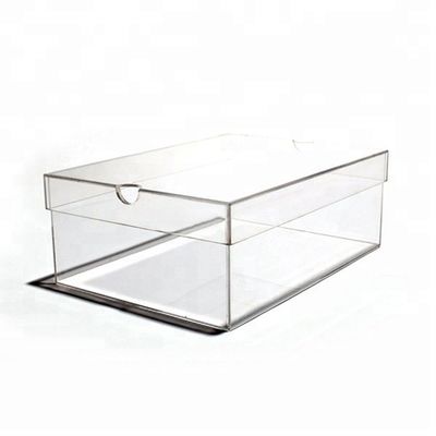 कस्टम एक्रिलिक जूता बॉक्स एक्रिलिक स्क्वायर कंटेनर क्रिस्टल पॉलिशिंग भूतल उपचार